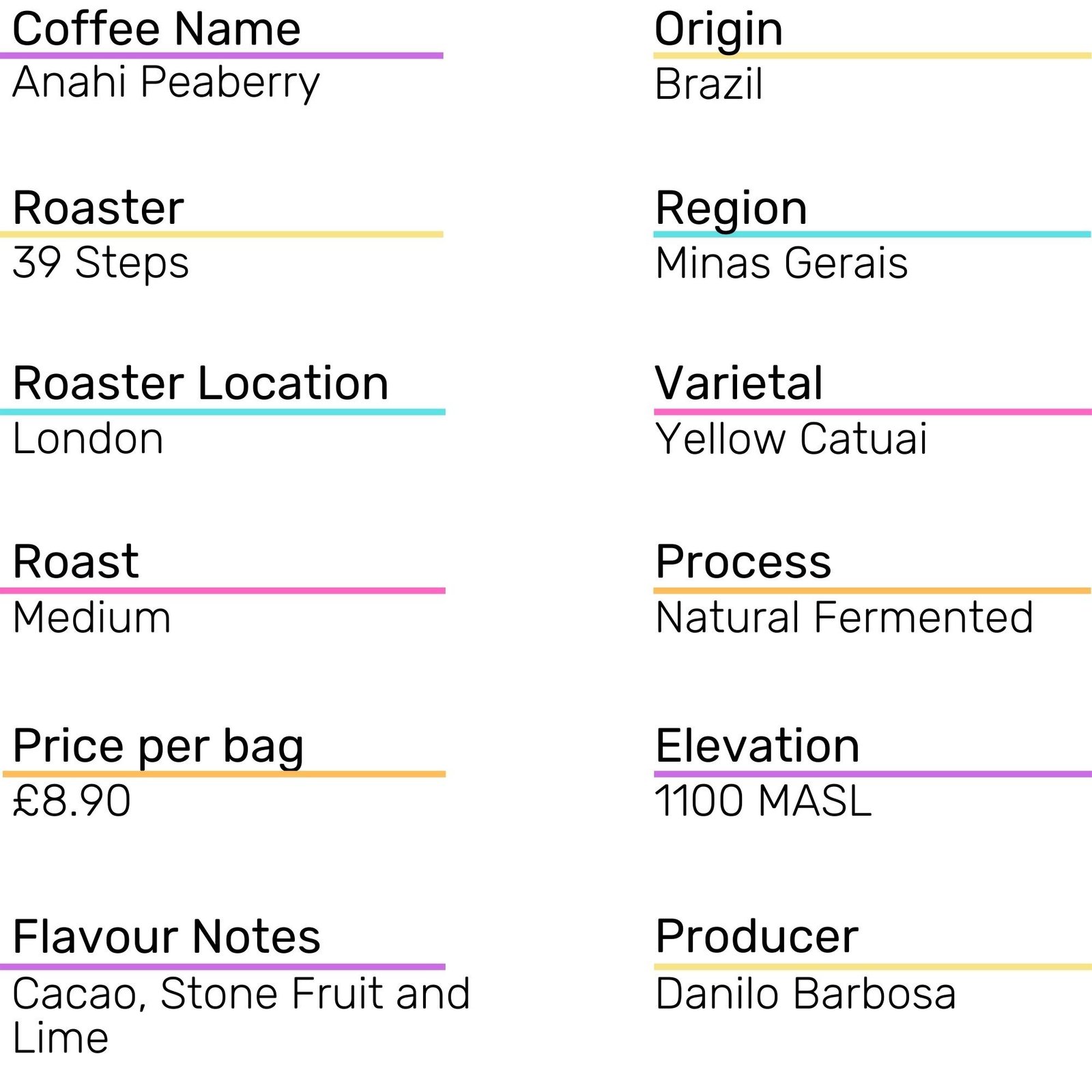 39 Steps coffee roasted launched in 2018 in Soho, London. They have also recently branched out to Knightsbridge opposite the world famous Harrods.