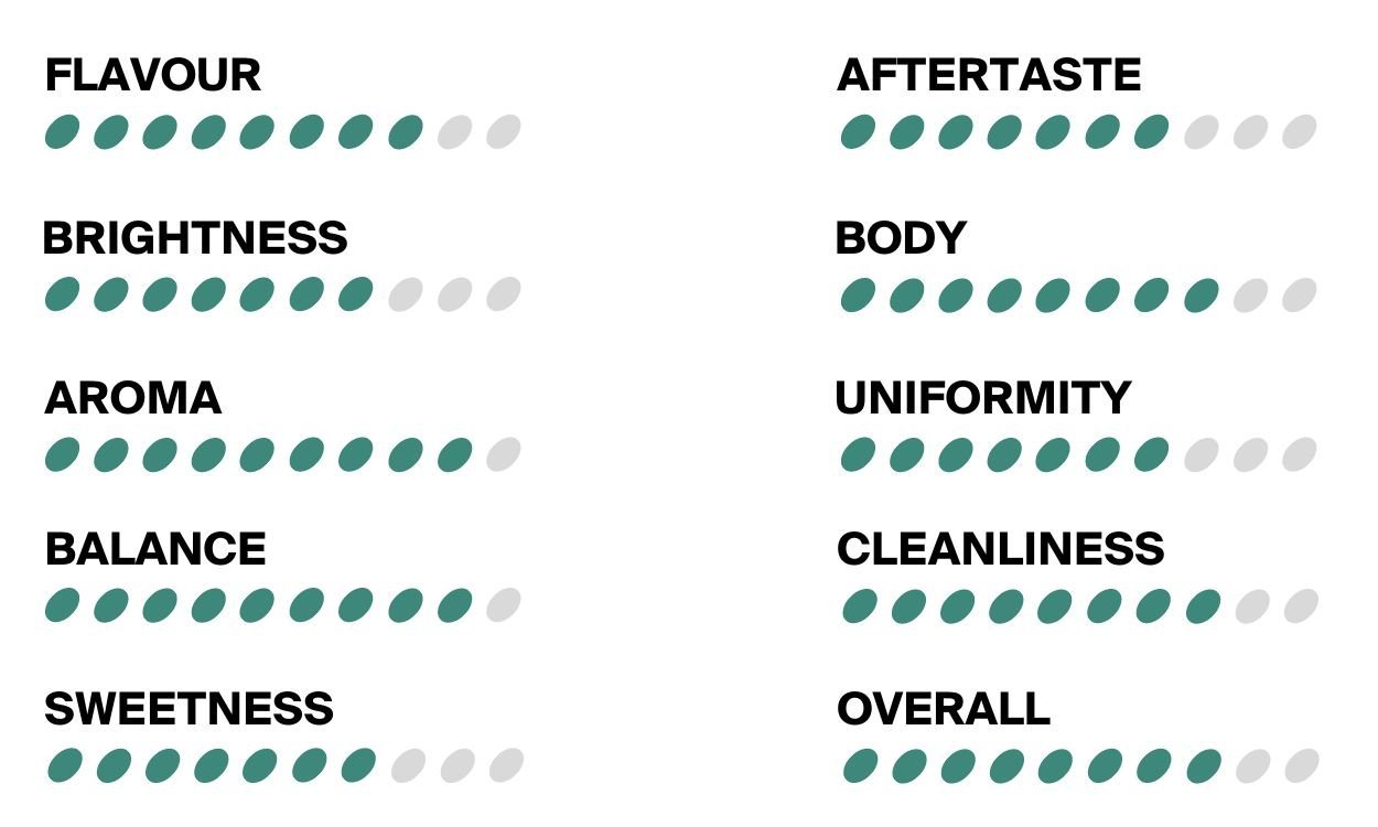 The coffee utilises a washed process before decaffeination, which is solvent base, using ethyl-acetate. It is derived from a mix of acetic acid (vinegar) and a natural extract distilled from sugar cane, blackberries, beets or sometimes grapes. A direct-solvent process is used, meaning that the beans are steamed to open their pores and are then rinsed in ethyl acetate repeatedly to remove the caffeine. Next, the beans are dried but not wholly. 10-12% humidity remains, and then the open bean is sealed with natural wax that in no way affects the specialty coffee’s flavour, fragrance or aroma.