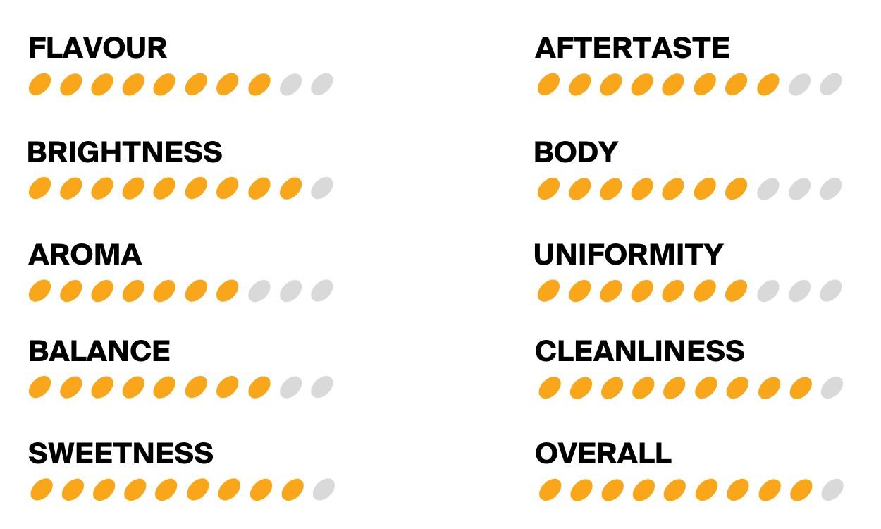They are currently planting 5 million new coffee seedlings to secure the future of Rwandan coffee. On farms averaging 1,700–2,000 masl, around 400,000 farmers work with RTC to mill, process, market, and export cherries grown across Rwanda’s famous landlocked, hilly terrain. After nine years of providing agronomy training, RTC is now rejuvenating older farms and has donated approximately 5 million seedlings across numerous locations. Processing: Inzovu beans undergo a full wash process, which highlights their bright, clean flavour. The high-altitude conditions and rich volcanic soils of the Nyakabuye region contribute to the beans’ complexity and refinement. After harvesting, the coffee is hulled, graded, and hand-sorted at the Rwanda Trading Company facility in Kigali