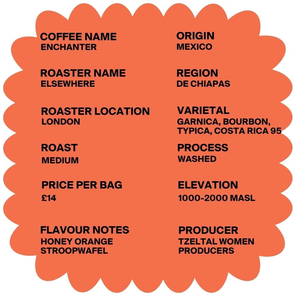 The Enchanter coffee from Elsewhere coffee roasters originates from the De Chiapas Region of Mexico.