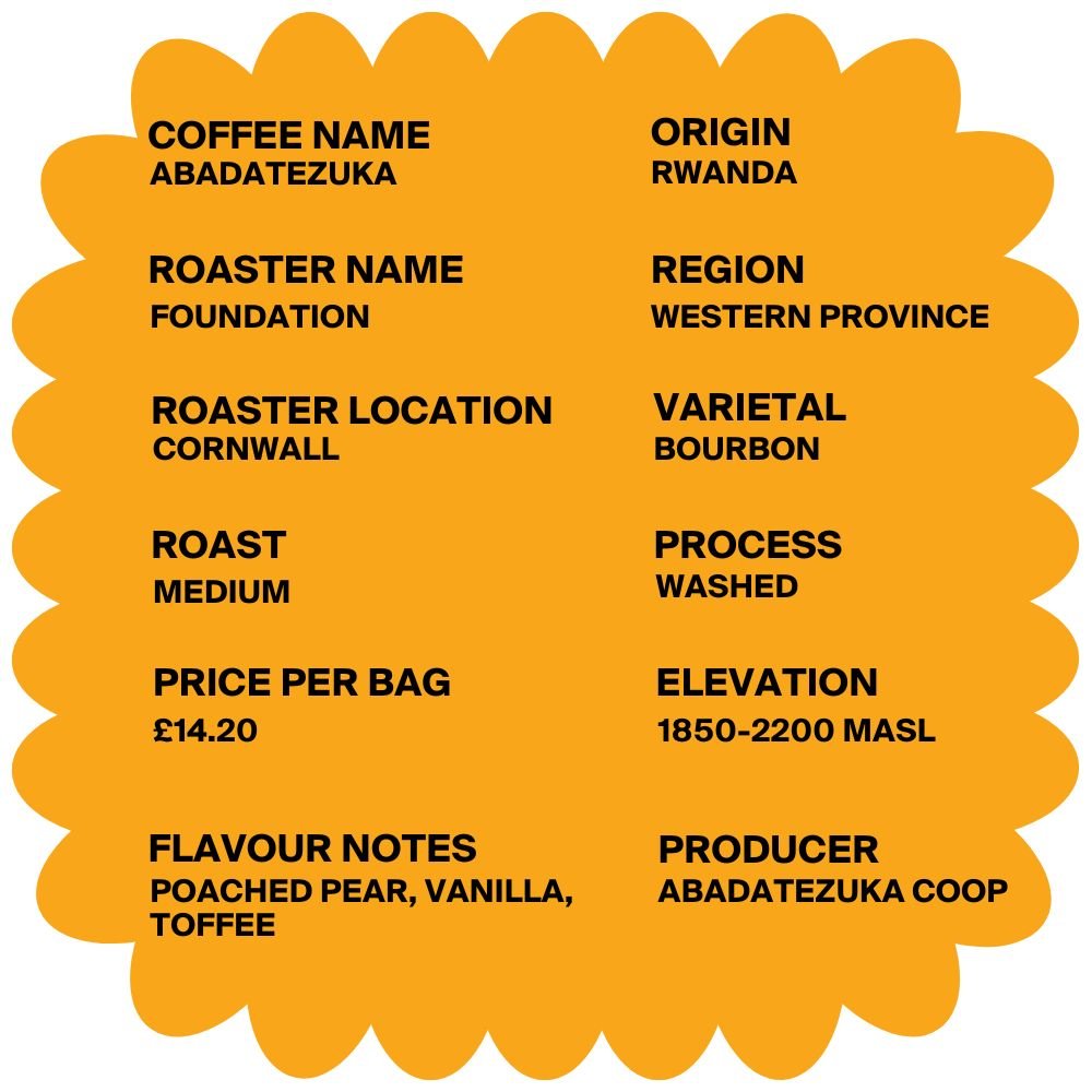 The Abadatezuka Coffee from Foundation Coffee Roasters originates from the Western Province of Rwanda.