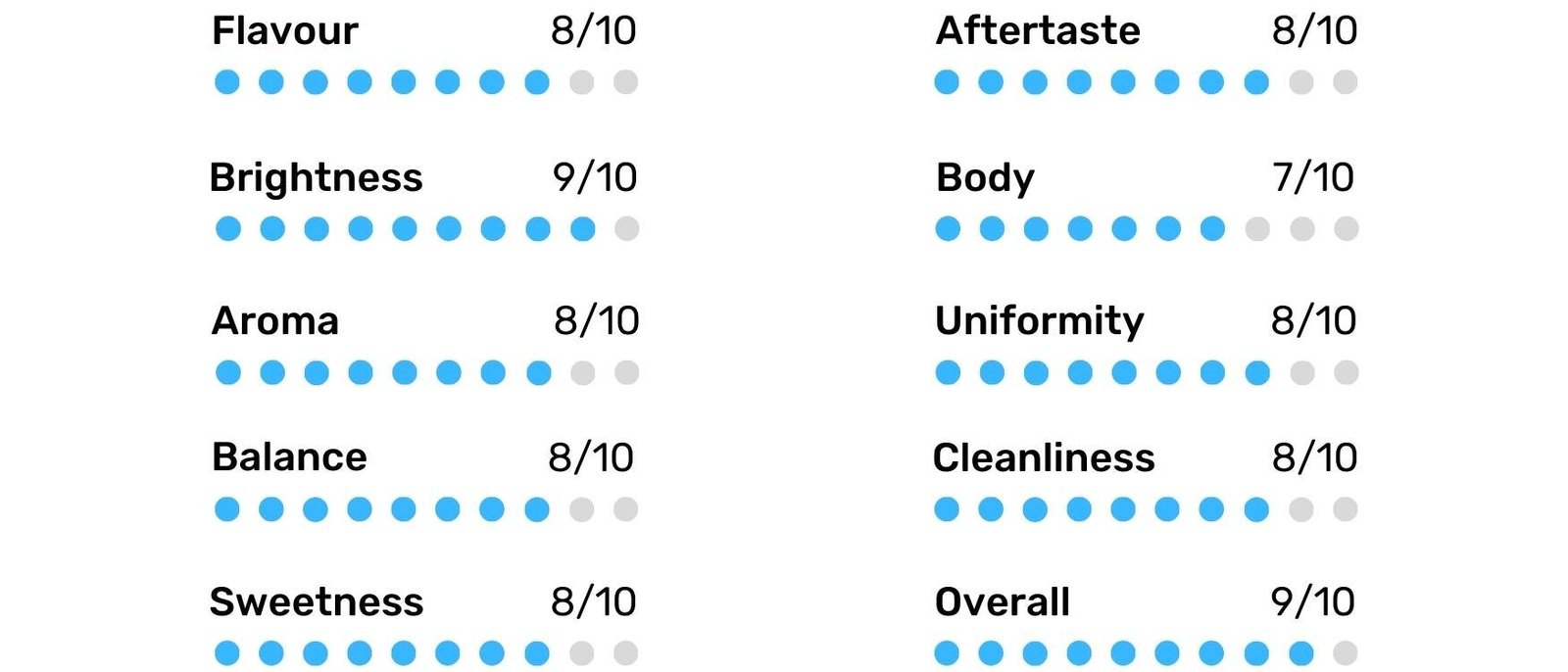 The coffee starts with a bright and crisp character. There are flavours of green apple that start at the front of the sip and carry through into the aftertaste.