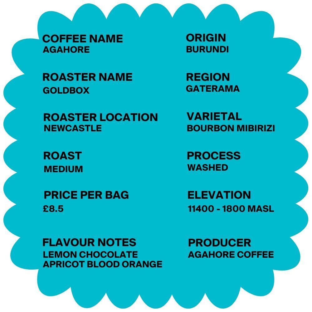Here’s an idea of what to expect from this delicious Burundi coffee from Gold Box Coffee Roasters. Team Batch brew method of choice – Cafetiere If you loved this coffee and want it to have it in your life again order directly from Gold Box Coffee Roasters now. DOWNLOAD BREW GUIDE CHEAT SHEET