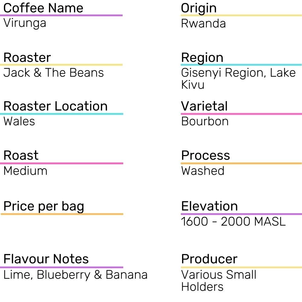 The Verunga coffee from Jack and the Beans Coffee Roasters originates from the Gisenyi region of Rwanda.