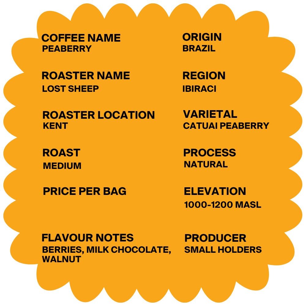 Here’s an idea of what to expect from this Brazilian Peaberry from Lost Sheep Coffee Roasters.