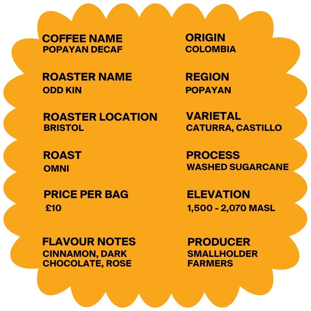 Here’s an idea of what to expect from this delightful Colombian Decaf coffee from Odd Kin. Team Batch brew method of choice – Cafetiere. If you loved this coffee and want it to have it in your life again order directly from Odd Kin Coffee Roasters Download Our Free Brew Guide PDF