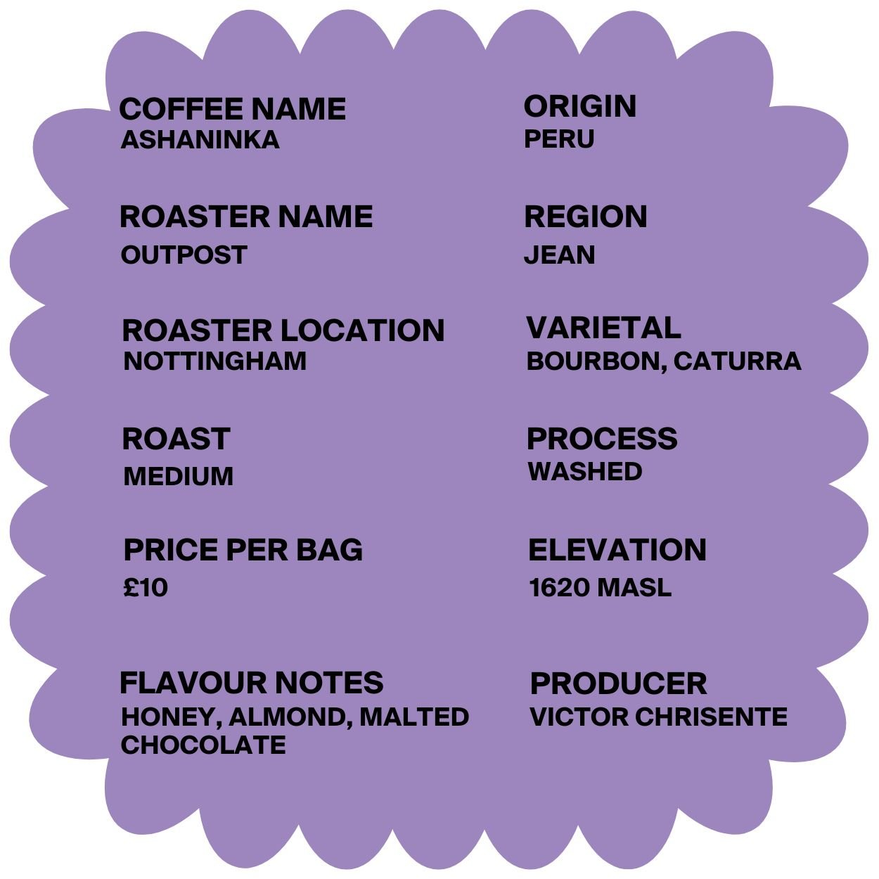 The Ashaninka coffee from Outpost coffee roasters originates from the Ene Valley region of Peru.