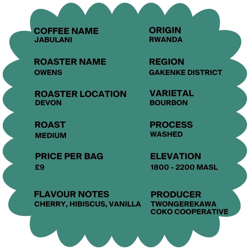 Jabulani: an extraordinary organic Rwandan single origin coffee born from a meaningful partnership between Owens Coffee, Jabo Butera of Plymouth’s Diversity Business Incubator, and the Jabulani Food Court.