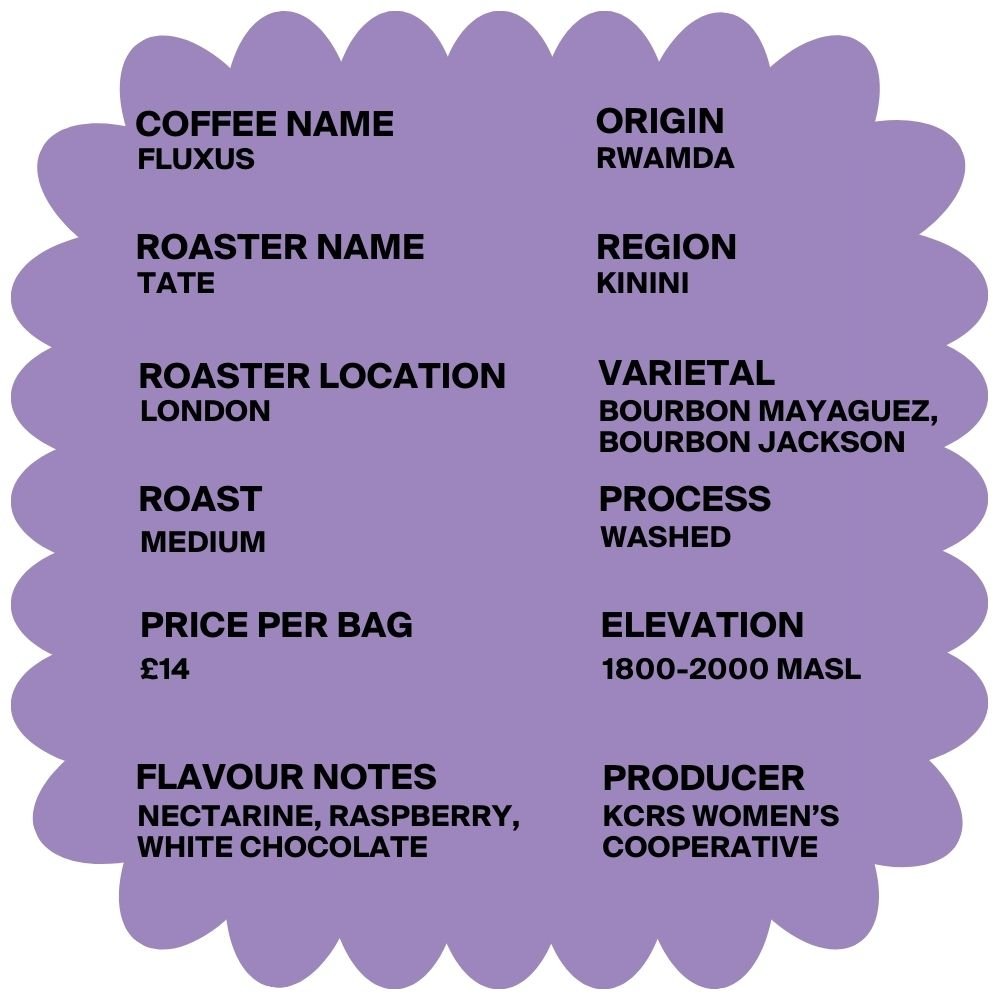 The Fluxus coffee from Tate coffee roasters originates from the Kinini region of Rwanda.