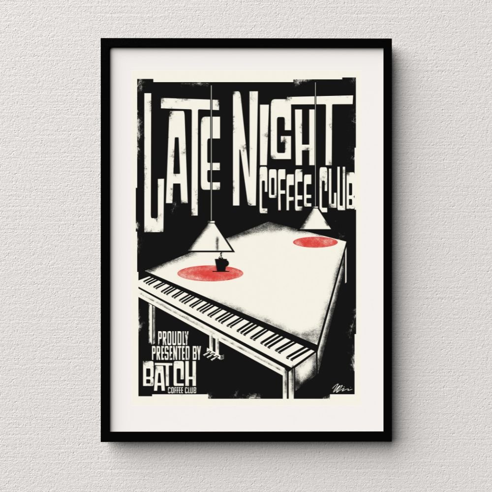 Enjoy the intrigue and camaraderie of after-hours coffee culture with our exclusive Late Night Coffee Club coffee print.