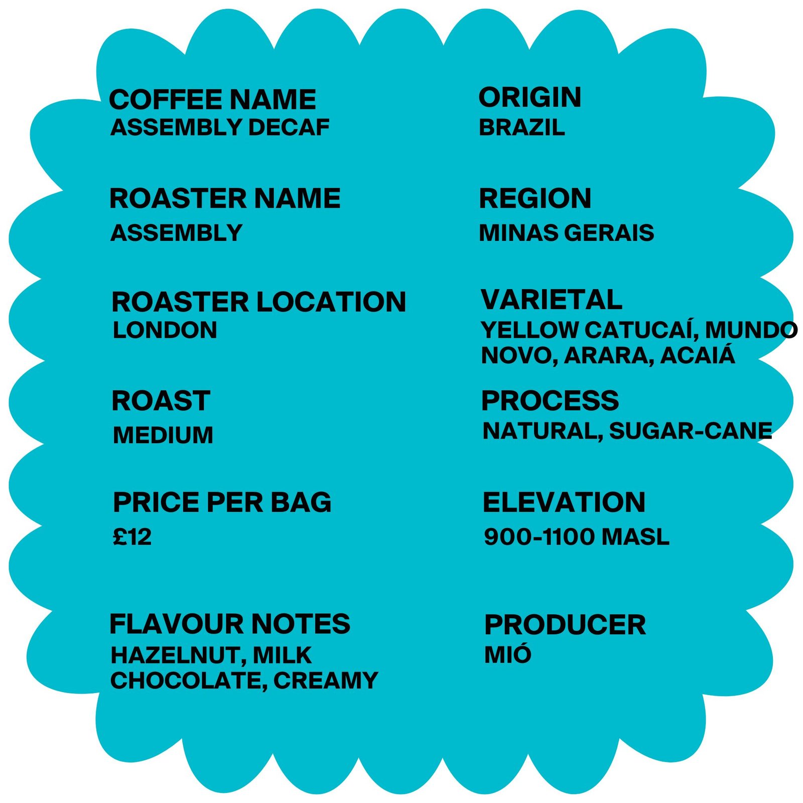 Here’s an idea of what to expect from this fantastic decaf coffee from Assembly coffee roasters.