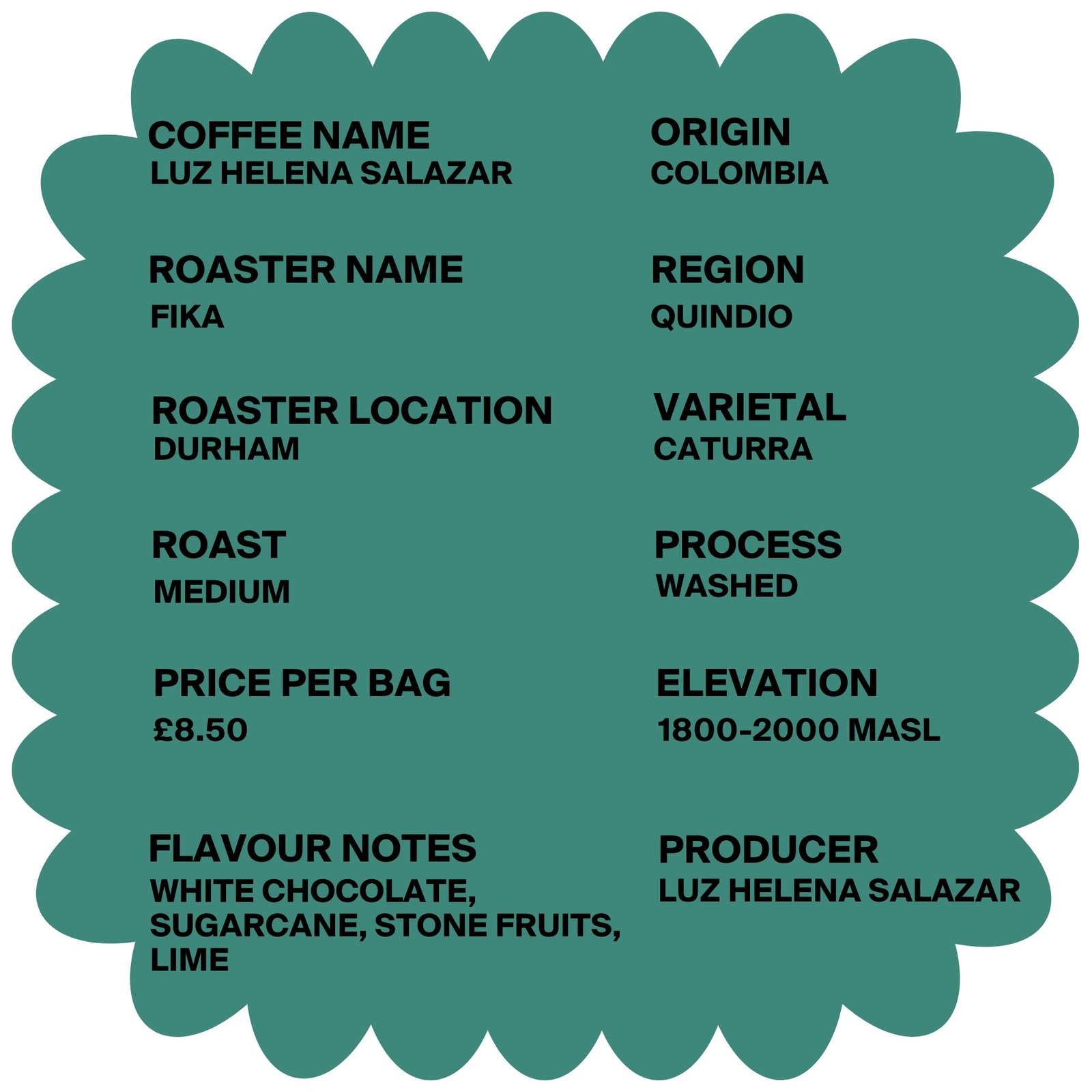 The Luz Helena Salazar coffee from Fika Coffee Roasters originates from the Quindio region of Colombia.