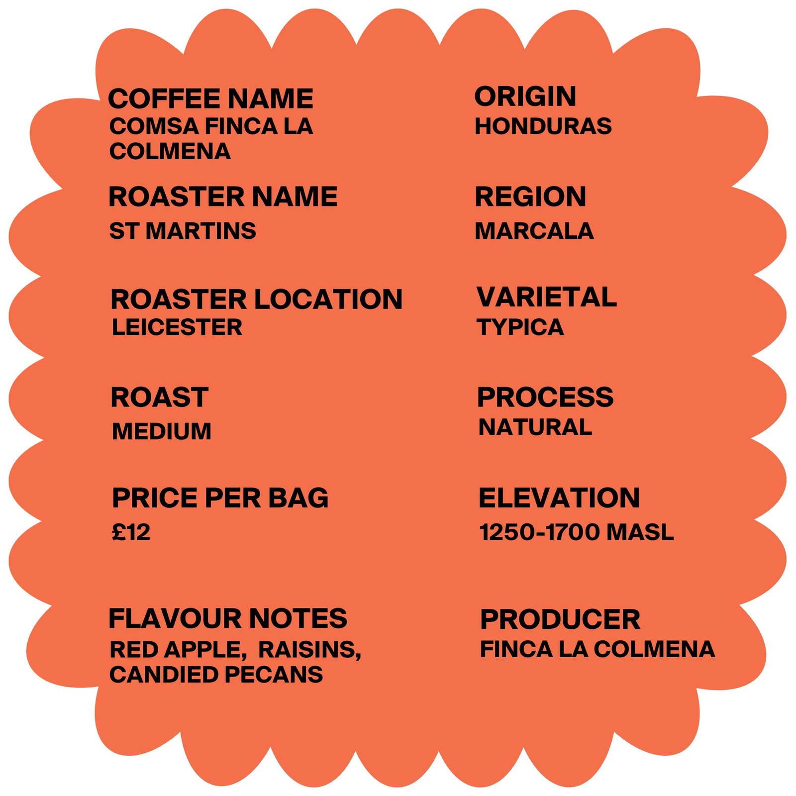 The Comsa Finca La Colmena coffee from St Martins Coffee roasters originates from Honduras.