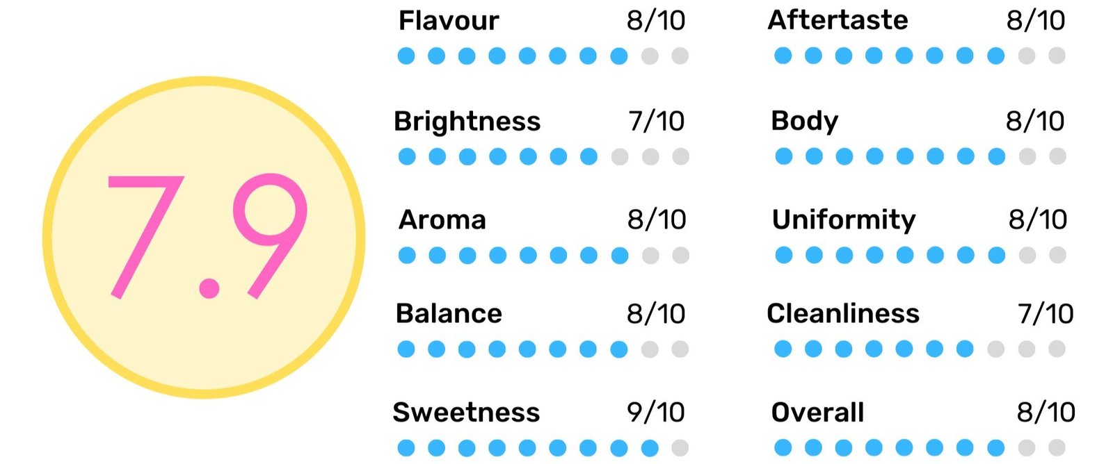 The cup starts with a satisfying sweet flavour that becomes more pronounced throughout the sip. It has a rich milk chocolate and honey flavour that lingers around right through to the finish. As the cup cools the complexity unveils as citric notes dance out of the brew alongside a cherry or two. The sweeter notes marry nicely with the interesting acidity and create a unique taste profile synonymous with naturally processed coffees.